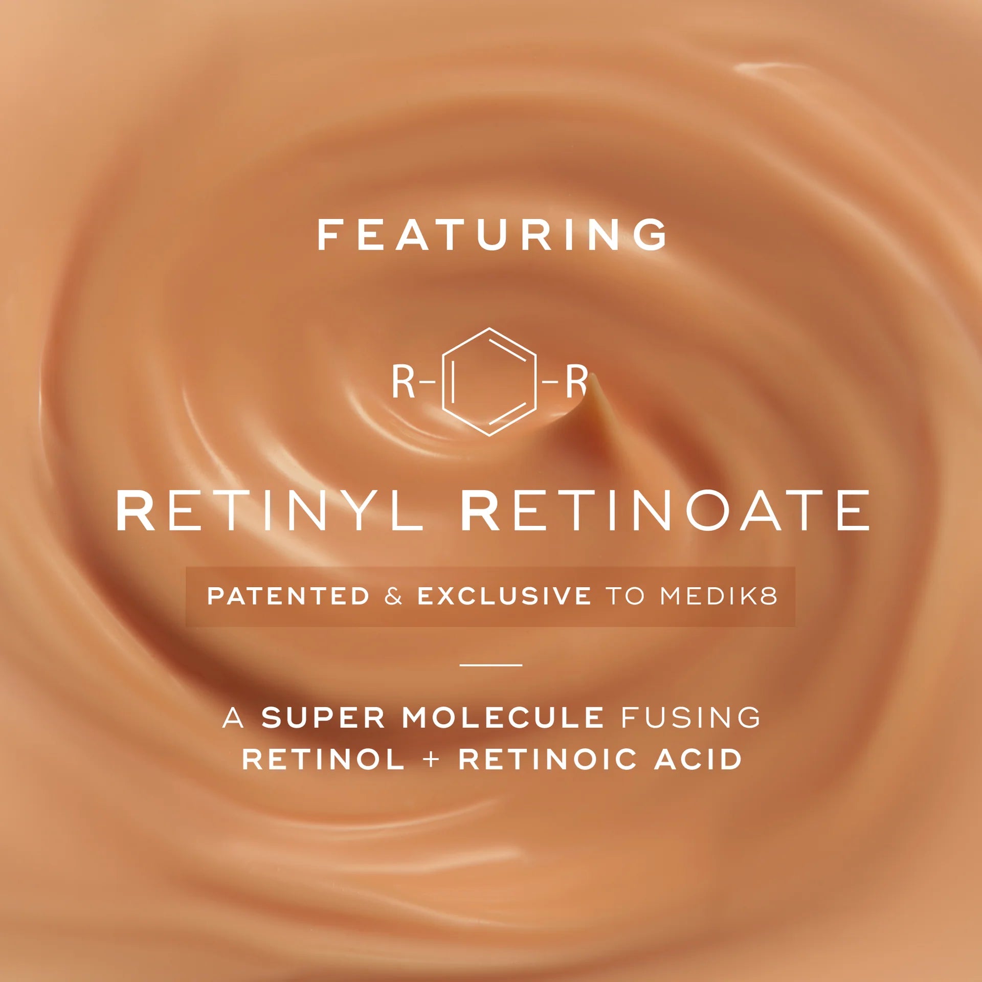 Το αποκλειστικό μόριο της Medik8, το ρετινοϊκό ρετινύλιο, αναμειγνύεται με την κατοχυρωμένη με δίπλωμα ευρεσιτεχνίας, κρυσταλλική σταθεροποιημένη ρετιναλδεΰδη, για εξαιρετικά, μοναδικά αποτελέσματα αντιγήρανσης που είναι ανώτερα από τις κλασικές μορφές βιταμίνης Α.