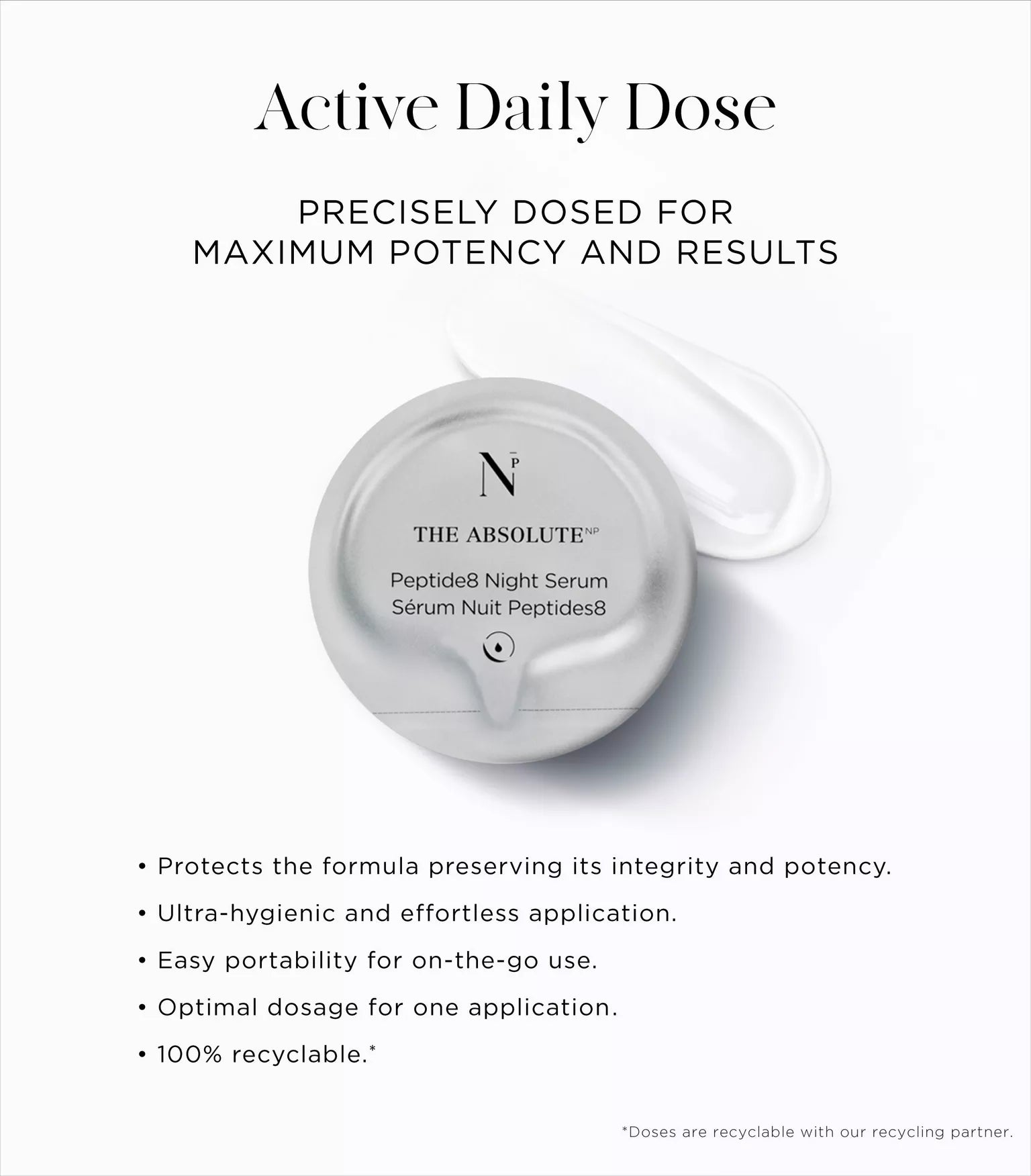 Τα υγιή βλαστοκύτταρα διαιρούνται και πολλαπλασιάζονται πολλές φορές. Όταν δεν είναι πλέον ικανά να αναγεννηθούν, εισέρχονται σε μία κατάσταση αδράνειας γνωστή ως κυτταρική γήρανση. Καθώς το δέρμα γερνά, καθίσταται πιο δύσκολο για τον οργανισμό να απομακρύνει αποτελεσματικά αυτά τα κύτταρα. Τα επίμονα γηρασμένα κύτταρα μπορούν να συσσωρευτούν και να προκαλέσουν φλεγμονή και βλάβη στους γειτονικούς υγιείς ιστούς. Η αφαίρεση των υπαρχόντων γηρασμένων κυττάρων βοηθά στη καταπολέμηση της κυτταρικής γήρανσης και στην αποκατάσταση της ζωτικότητας του δέρματος. Ένα ισχυρό μείγμα οκτώ πεπτιδίων, ενθυλακωμένων στην πρωτοποριακή τεχνολογία OSMV της Noble Panacea, είναι προγραμματισμένο να ενεργοποιείται τη νύχτα, όταν το δέρμα είναι πιο δεκτικό και τα πεπτίδια μπορούν να διεισδύσουν σε βάθος χωρίς κίνδυνο αποδόμησης από την UV ακτινοβολία. Αυτό το στοχευμένο σύμπλεγμα πεπτιδίων υποστηρίζει την νυχτερινή αναγέννηση του δέρματος, διεγείροντας τη σύνθεση κολλαγόνου και ελαστίνης, αφήνοντας το δέρμα ορατά πιο σφριγηλό και λείο.